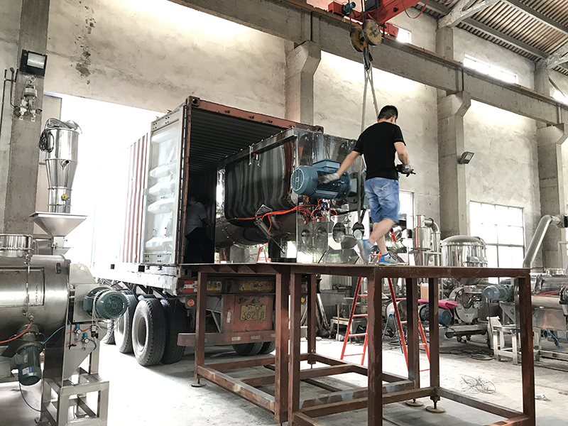 马来西亚客户订购的3立方螺带今日出货了,该客户主要为伊利提供饲料加工。螺带混合机是一种新型高效的混合设备,对各种粉体或糊状物料能进行有效的高均匀度混合。该机由混合槽,螺旋搅拌叶和传动部件等组合而成,螺旋叶片一般做成二层,外层螺旋将物料从两侧向中央汇集,内层螺旋将物料从中央向两侧分流,使物料在混合槽内形成对流混合,从而达到高均匀度混合。