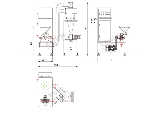 | L | W1 | W2 | H1 | H2 | H3 | Kg/H | mm | mesh | Kg | rpm | KW | ||