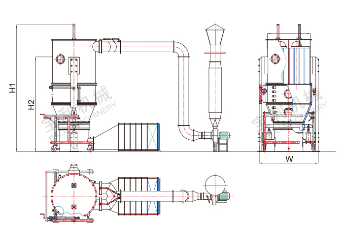 | W | H1 | H2 | Φ | L | KG/批 | Kg/h | Kw | Mpa | M³/min | |